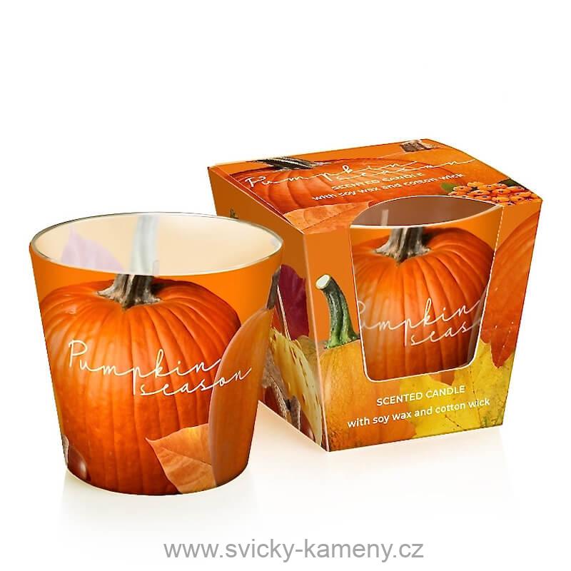 Vonná dekorativní svíčka je v moderním skle kónického tvaru s dekorem Dýňové sezóny a má příjemnou svěží vůni. Svíčka je vhodná jako bytový doplněk a také do vaší kanceláře, kde vám vytvoří příjemnou pracovní atmosféru. Plamen svíčky uklidňuje a harmonizuje, díky tomu se zvyšuje naše soustředění na práci i odpočinek. Skvělý dárek pro každého. Rozměr 90x85 mm, doba hoření je ± 30 hodin.