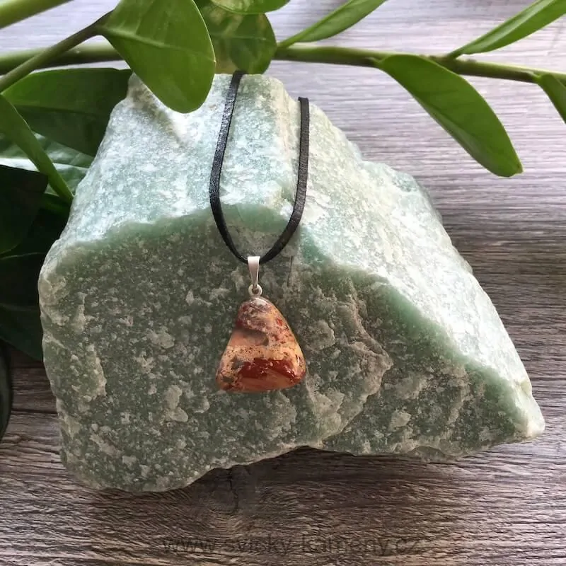 - JASPIS BREKCIE LEŠTĚNÝ KÁMEN PŘÍVĚSEK NA KRK
